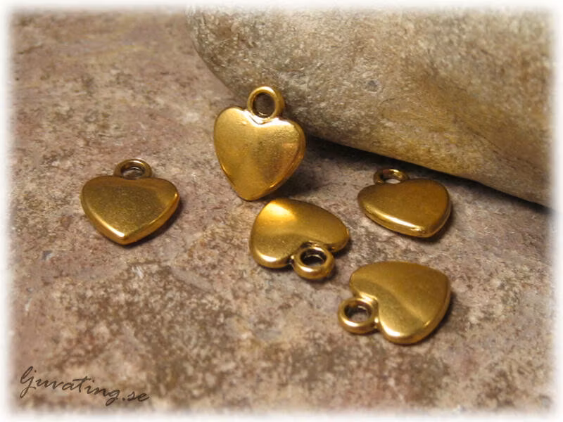 Berlock i metall litet hjärta antik guldf ca 10 mm