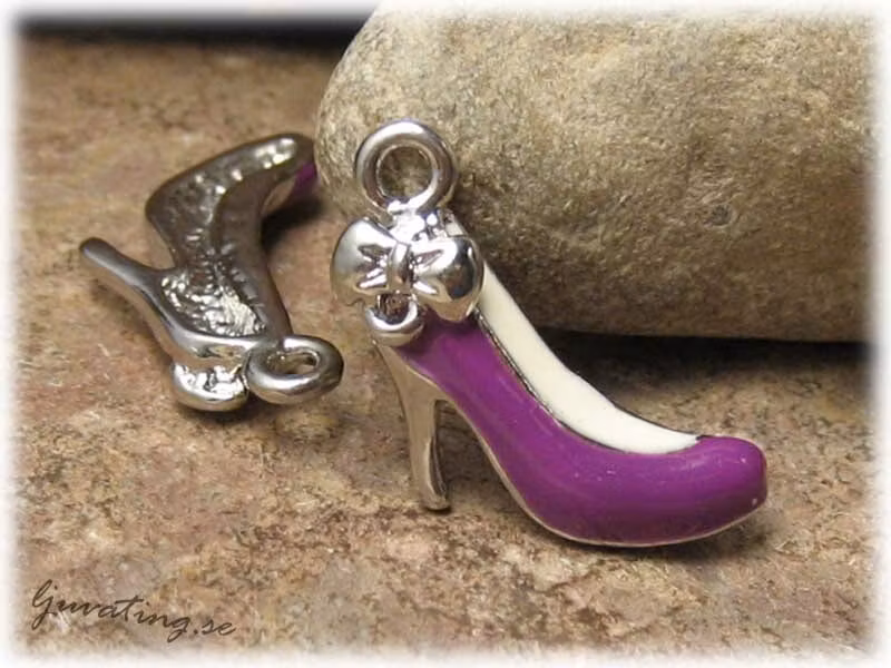Berlock/Hänge lila sko med rosett i metall ca 25x22 mm