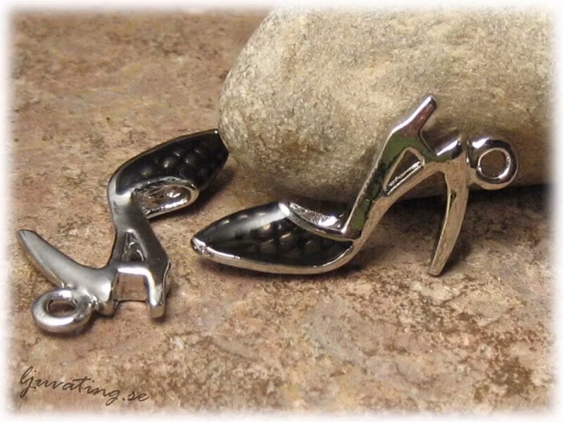 Berlock/Hänge Svart spetsig sko i metall ca 32x17 mm